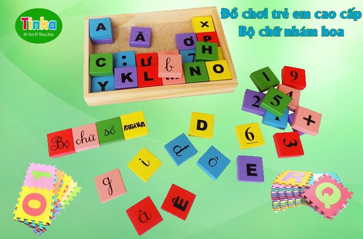 Bộ chữ nhám hoa được làm từ gỗ sồi; trên mặt gỗ in chữ cái to. Đồ chơi phục vụ học tập Bộ chữ nhám hoa tại Tinka là món đồ cần thiết cho bé vào lớp 1. Nhờ bộ chữ này, bé có thể nhận diện được mặt chữ nhanh hơn; ghi nhớ các con chữ và cách ghép các chữ; từ đó lanh lợi hơn trong lớp học.