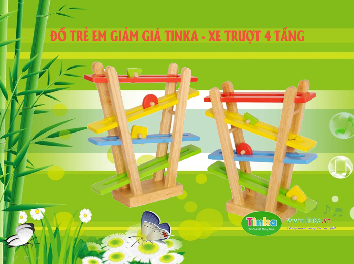 Xe trượt Tinka gỗ 4 tầng là một món đồ chơi giáo dục tiêu biểu. Bé phải khéo léo để thả sao cho món đồ chơi chạy đúng; không bị rơi và hồi hộp chờ đợi cho chiếc bánh xe chạy suốt 4 tầng tháp.