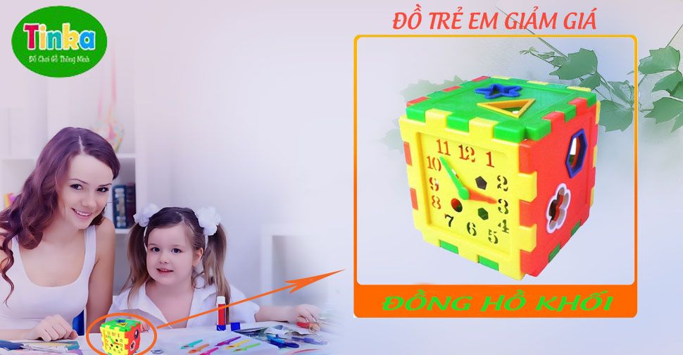 Đồng hồ khối là món đồ chơi giảm giá tại Tinka rất được yêu thích. Qua món đồ chơi này bạn có thể dạy cho bé cách phân biệt các kim trên đồng hồ, cách xem đồng hồ. Ngoài ra, bé còn có thể học những con số; cách lắp ghép các khối hình khác nhau sao cho vừa vào các lỗ trên đồng hồ gỗ.