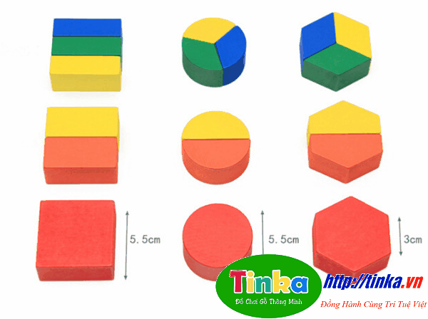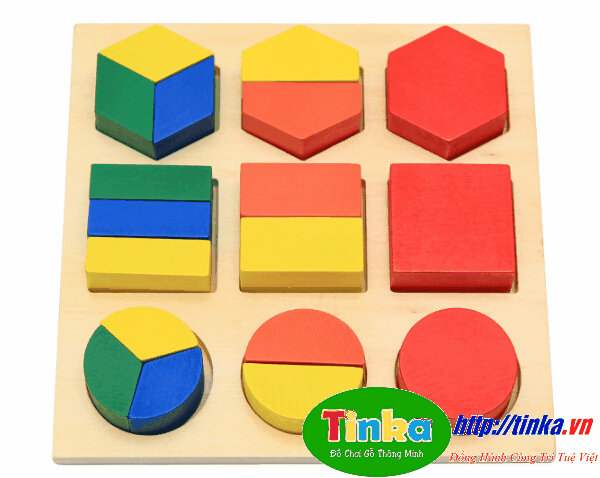 – Bộ đồ chơi ghép hình đa giác giúp bé phân biệt các hình khối khác nhau, hỗ trợ về mặt nhận diện hình học