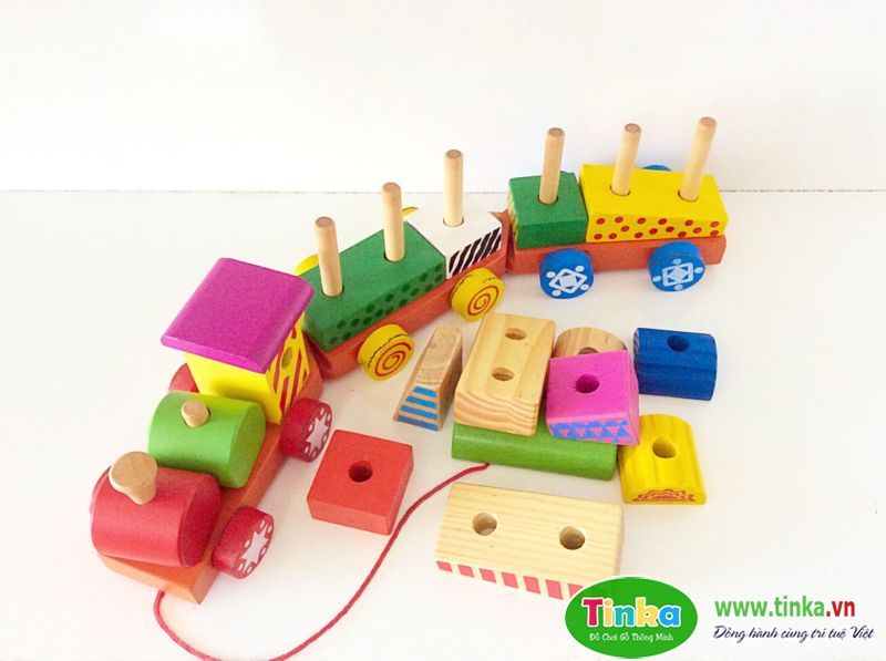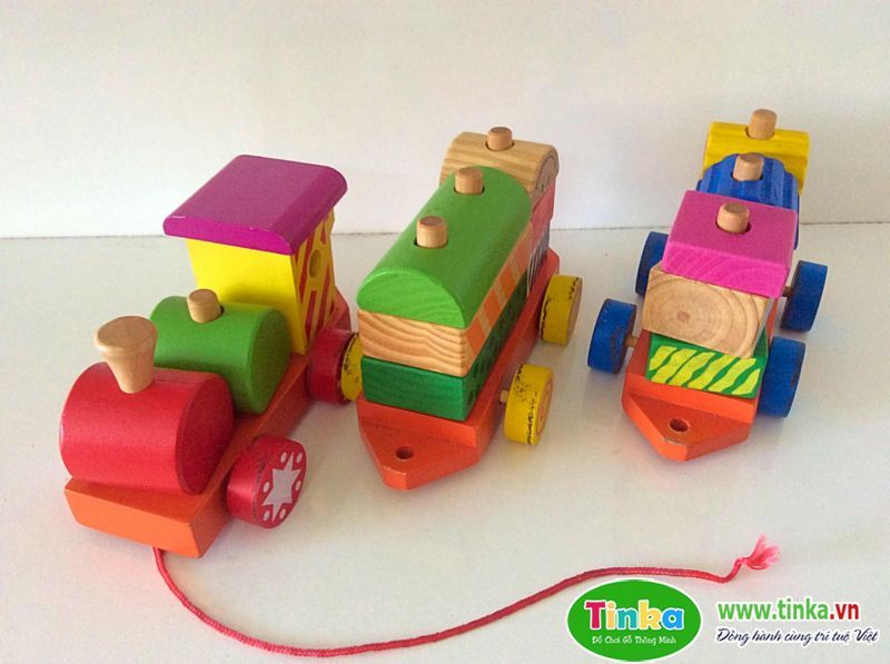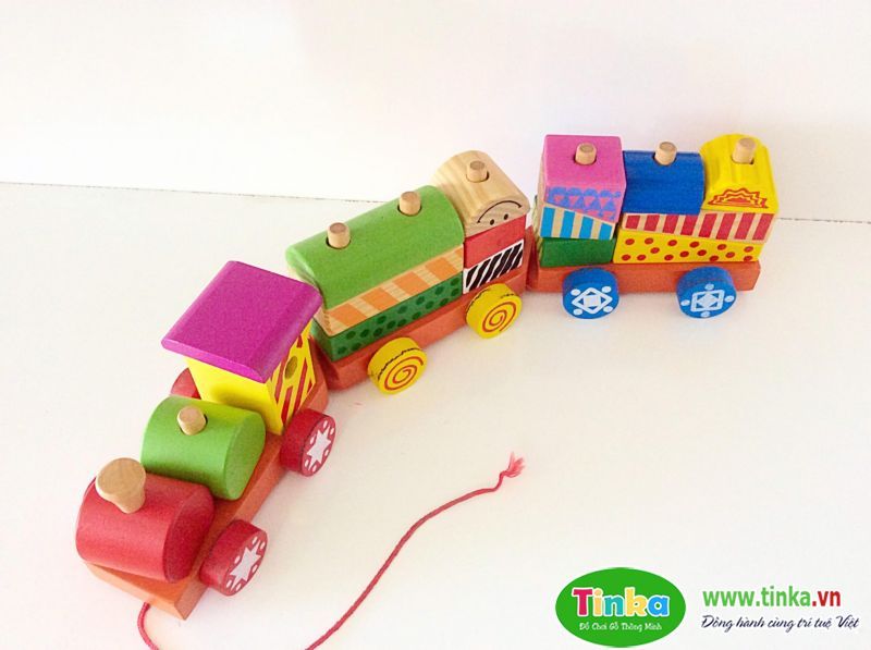 Tàu lửa kéo khối được tạo thành bởi các khối gỗ màu sắc khác nhau, bé sẽ vứa chơi vừa lắp ghép các khối sao cho theo logic, thứ tự, đúng màu sắc để được đoàn tàu có 3 toa nhé.